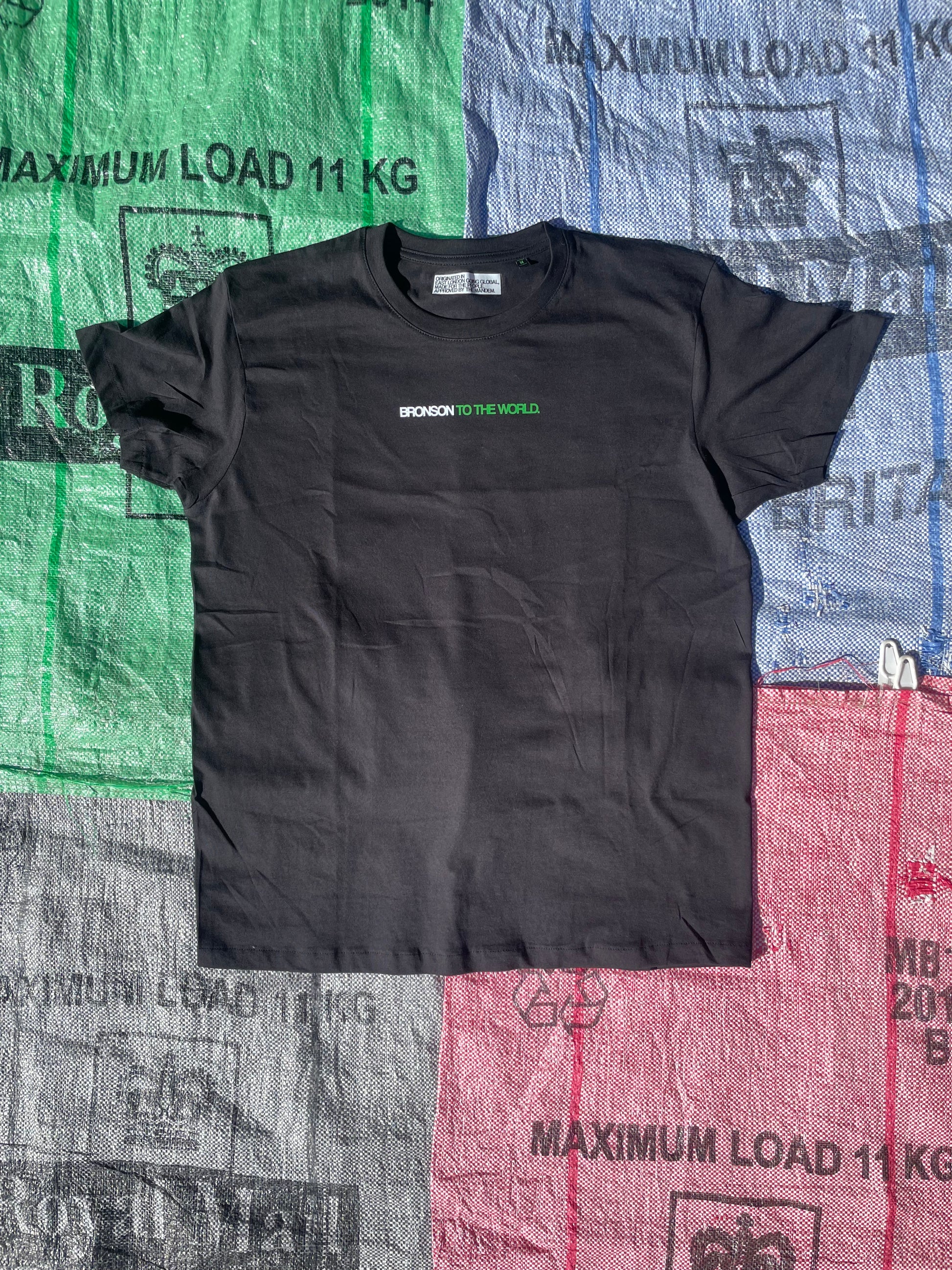 Bronson To The World DTF print central chest, “Originated in East London” motto back DTF print