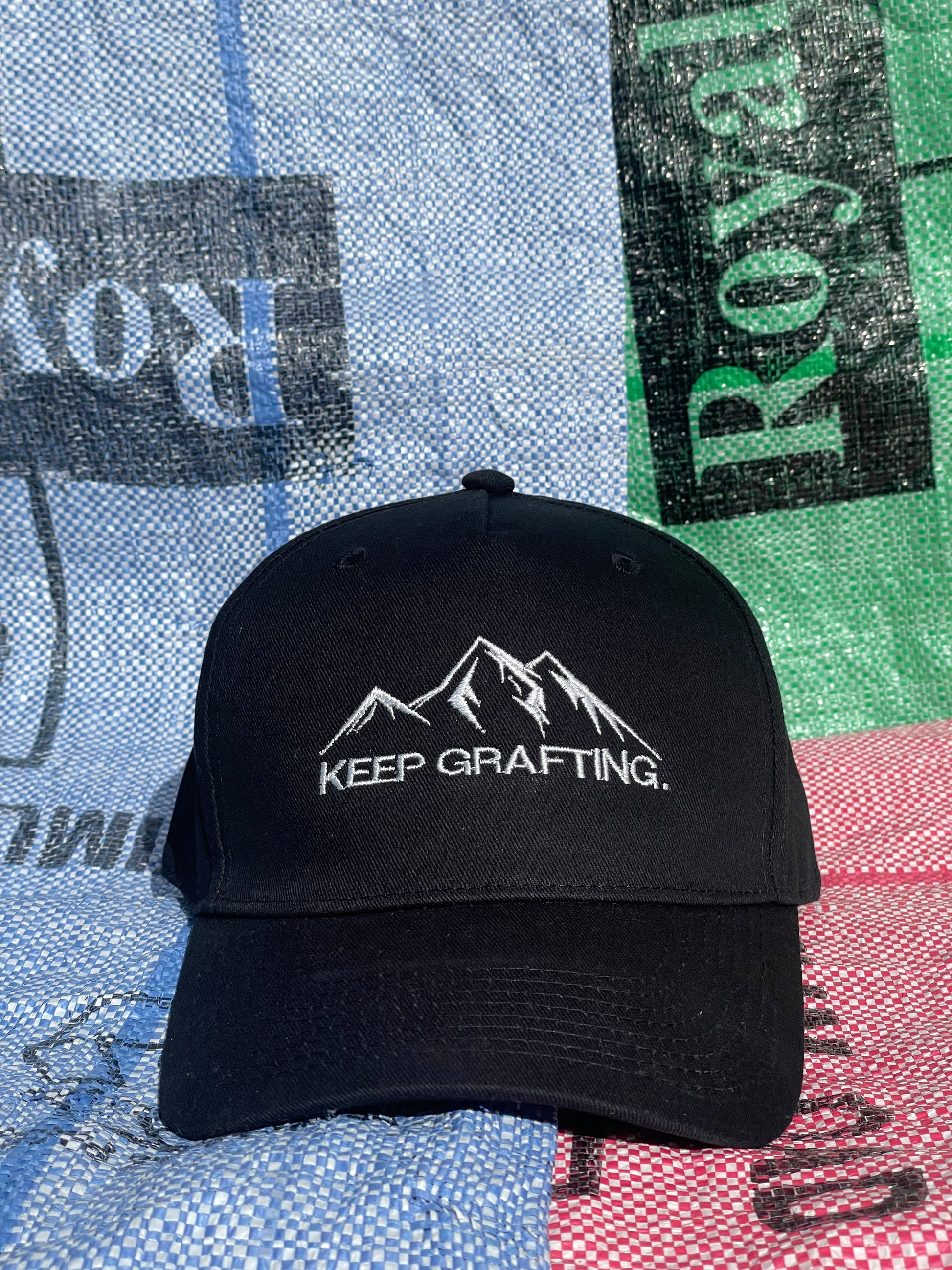 Keep Grafting logo embroidered front panel, by.BRONSON embroidered on back arch